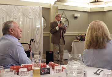 Following on from the tea party we made our way to the function room for the supper. The hotel staff had done a very good job setting the room up for us and as is customary (and necessary!) we had our own bar! The ladies, Julie Gardner, Diane Peaty, Sue Dimbylow, Dee Watson and Sue Grant did sterling work selling the raffle tickets in support of TPM and raised a splendid amount. Thanks must go to Brian Loades for his help in sorting out the computer problem that stalled the projector. When there’s a problem you always find Brian helping out.