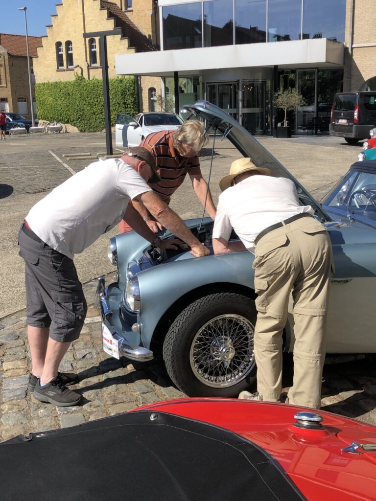 For Jo and me, it was off to Elisabeth’s workshop to by-pass the servo, and once again we had with us the kind Healey Forayers John and son Mark together with David Thorn (of Feely Bag fame) to make sure we arrived safely. Having shepherded us to Utrecht they then set of for Arnhem to catch up with the rest of the group. The servo was taken out of the braking system and once the brakes were bled, they came back online, and we had brakes that worked. This meant the master cylinder in the boot was a perfectly good unit – handy should we encounter any more problems!