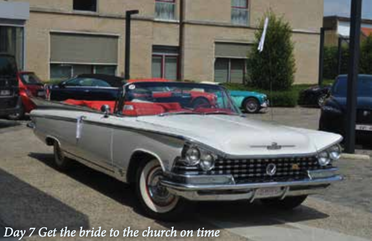 Healey owners are always ready to help a maiden in distress. When the bridal car (big American) waiting for the bride to leave the Ariane Hotel to go to the church, had battery failure, a knight in shining armour, Roger Le-Vallee, stepped forward with his battery pack to get the bride to the church on time.