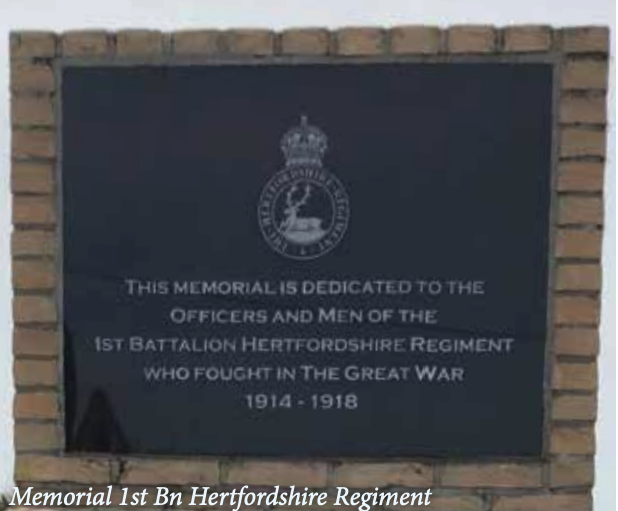 The first visit was to the Yorkshire Trench and Dugout only 2.5 miles from the hotel and set in an industrial estate with a vile smelling green environmental garden recycling refuse plant across the road. However it must have smelt much worse than that in 1914/18 !!! We then drove on to the Tyne Cot Memorial and spent an hour or two in reflection of the cost of our freedom that we owe to the fallen. Wherever you go in the local countryside you see cemeteries and monuments to the fallen such as the Memorial 1st Bn Hertfordshire Regiment at crossroads on route to the Tyne Cot Memorial.